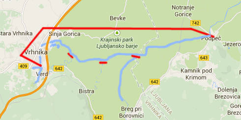 Dalla confluenza delle due Ljubljanice fino al ponte nel villaggio Podpeč